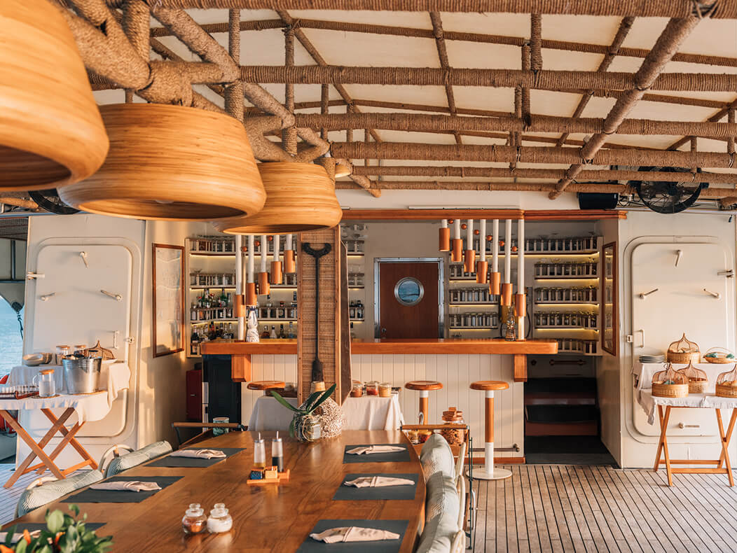 While most other boats have set itineraries, we’re completely flexible based on your interests, passions and desires. We always travel to well-known destinations like Komodo Island and Spice Islands. But where we’re different is that we let the weather, waves, and how you’re feeling drive changes as we go. After all, we’re on water — a place that knows no boundaries. And that means we discover places full of adventure like visiting a village which only sees tourists a couple times a year, swimming through an ancient cave with torches to guide the way, and having sunset cocktails on a beach most other boats have never found.